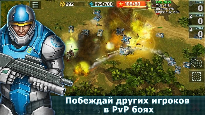 Art of War 3: Modern PvP RTS не имеет аналогов на телефонах. Неповторимость каждой из фракции и большой выбор боевых единиц, а также увлекательная система прокачки каждого юнита способна впечатлить даже бывалого геймера. Еще никогда онлайн игры на телефон андроид не были настолько детализованными: грандиозные PvP сражения заставят ощутить напряженную атмосферу, а непредсказуемые миссии займут не один час вашего времени.